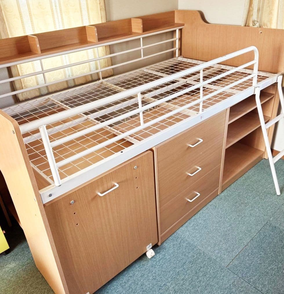- 小6の息子部屋を作ることになったので黒色を購入しました。 とにかく重くで大きなサイズですので、納品も組み立てまでのちょっとした保管も、箱の処分も大変でしたが、組み立てはシンプルでした。出来あがるとベッド下の空間がとても広くて、狭い部屋を有効活用できました!息子も気に入ってくれています!