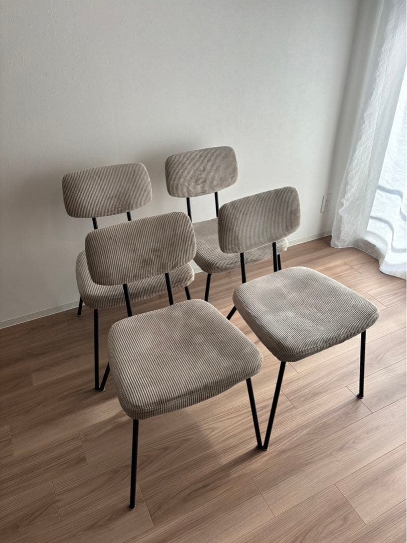 購入前にフォローしてコメントいただけましたら\r10%OFFさせていただきます!!\r\rなお、フォロー割をご希望の方は、\r必ずご購入前にコメント欄にてお知らせください。\r(購入後の金額変更はできません)\r\rご覧頂きありがとうございます!\r\r★★即購入、無言購入大歓迎★★\r\r\r――――― 商品案内 ―――――\r\r宮崎椅子製作所 R+R chair 小泉誠さんデザイン\r\r1脚ずつ2点出品しています。\r(こちらの椅子を➁としています)\r\rセットをご希望の方は購入前にご連絡いただければ、\r送料削減分をお値引きいたします。\r\rヤマト運輸 梱包サイズ160サイズ(2脚まで160サイズ)\r\r12年程前に小泉誠さんの「こいずみ道具店」で購入し、\r来客時等に使用していましたが、\r最近数年は別の椅子を使用しているため出品しました。\r\r大きな傷や汚れは無く綺麗だと思いますが、\r小傷等は写真にてご確認お願いいたします。\r\r直線的でミニマルなデザインですが、\r宮崎椅子製作所の技術が活かされた\rディテールに微妙なカーブや\rさまざまなRがそなわり、\r豊かな表情を持つ椅子です。\r\r「R+R」という名前はRが沢山あることに由来している通り、\r非常に手触りの良い優しい椅子です。\r\r樹種)ウォールナット材蜜ロウ仕上げ\r張地)L-2ランクのYA-BLK(ブラック)※\r参考価格)R+R chair ウォールナット ¥95,040(税込)\rサイズ)W380×D475×H745/SH430 (mm)\r\r※張地はうろ覚えです\r\r2004年度グッドデザイン賞受賞\r\r――――― 状態 ―――――\r\r★【A】★\r\r【N】 新品、展示品、デッドストックなど\r【S】 ほぼ新品、美 USED\r【A】 若干の使用感はあるが、状態の良い USED\r【B】 使用感はあるが、目立つダメージや大きな汚れは無い\r【C】 使用感と部分的に目立つダメージや汚れあり\r【D】 過度の使用感、目立つダメージや汚れあり、使用は可能\r\r※個人の独自の基準です\r\r――――― その他、注意事項 ―――――\r\r・自主検品していますが自宅保管品のため、\r 多少の使用感がございます\r\r・気になる点がございましたら、\r 購入前にご質問をお願いいたします| カテゴリー: | 家具・インテリア>>>椅子・チェア>>>椅子 |